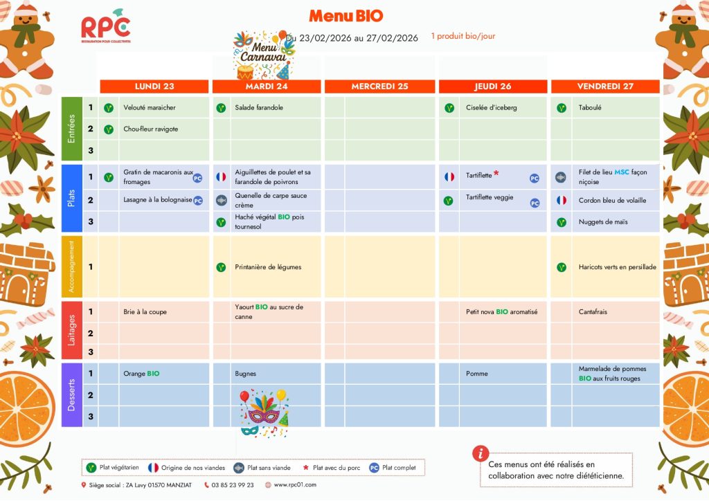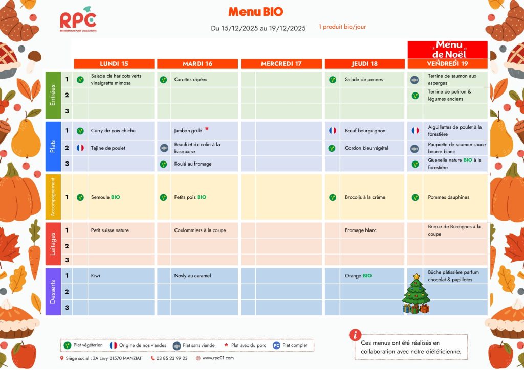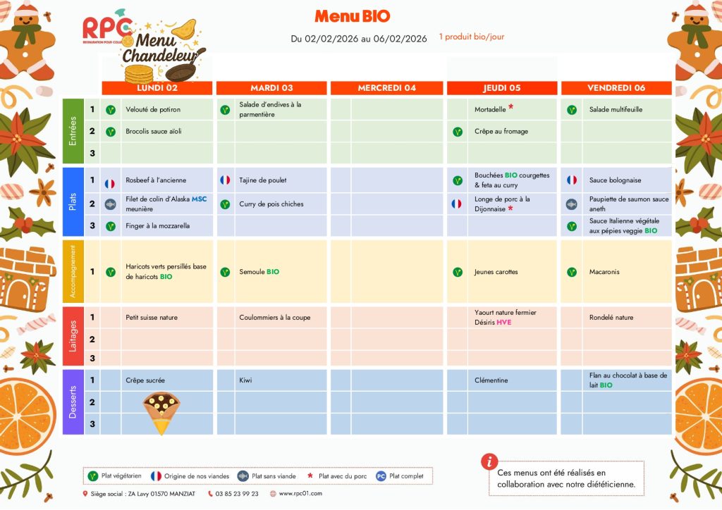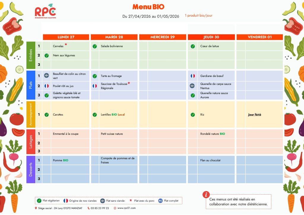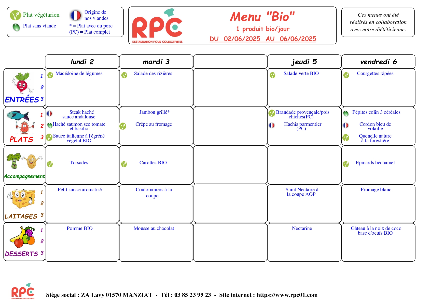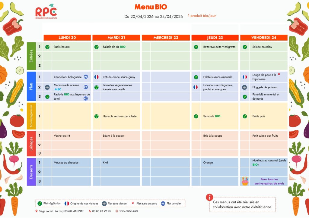 Cette année, les repas nous seront livrés par la société RPC basée dans l’Ain.Pensez à utiliser Ecole Direct pour annuler les repas de vos enfants !