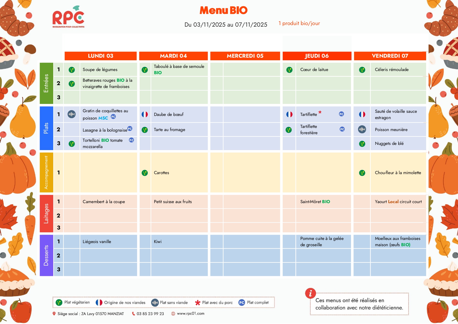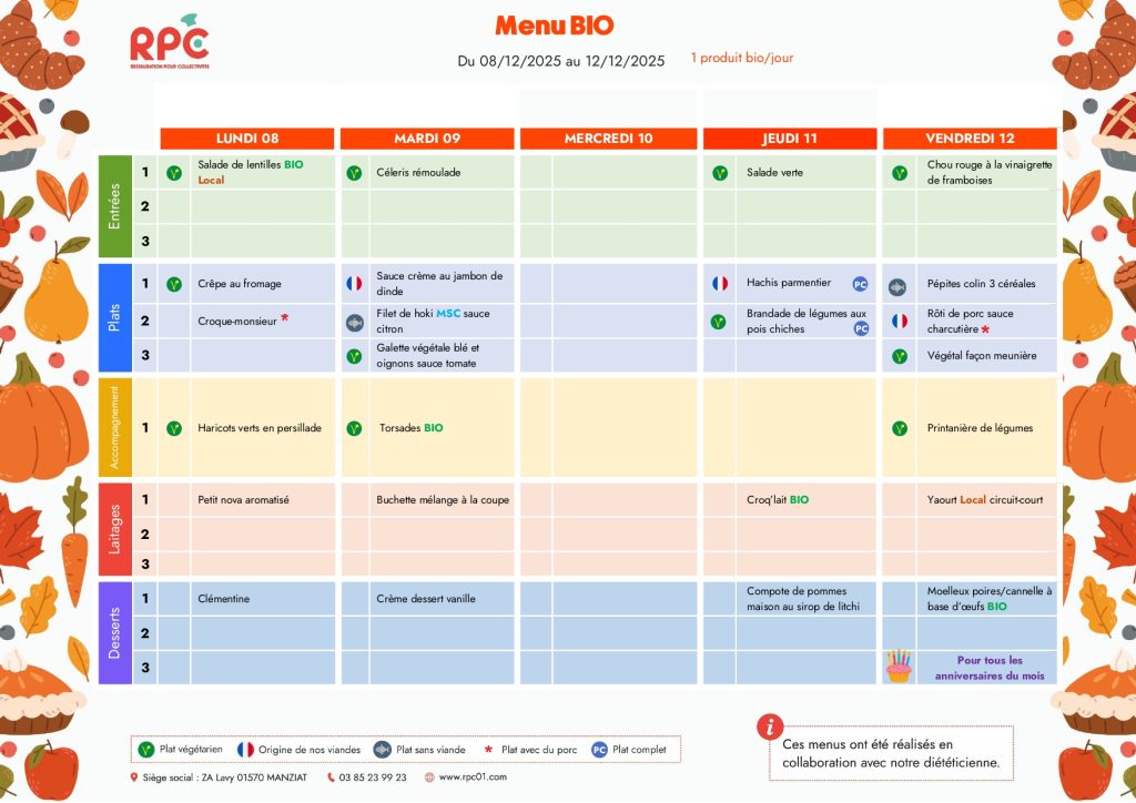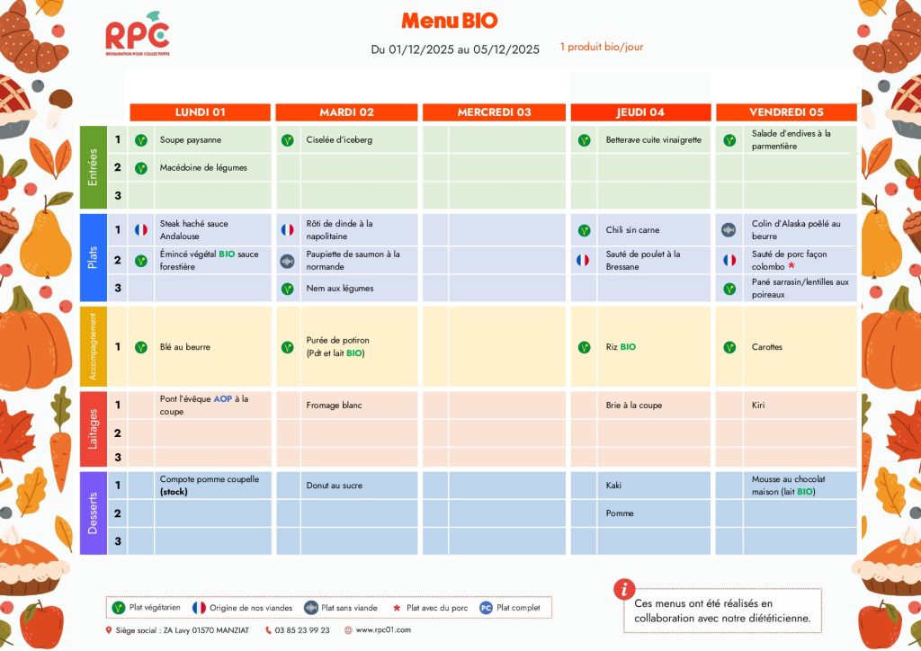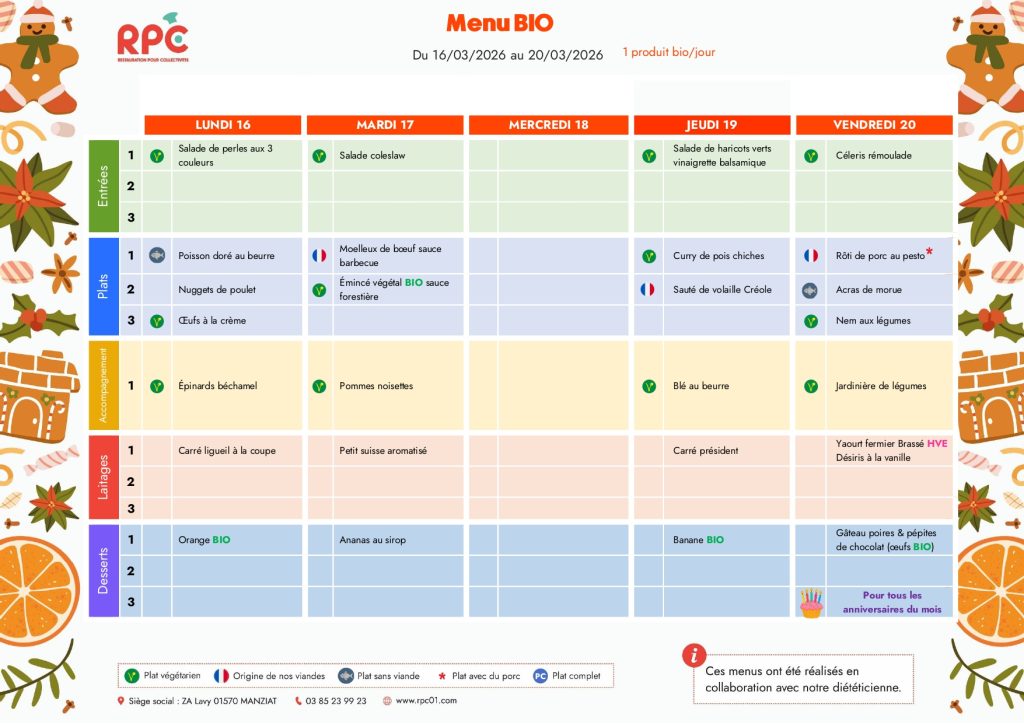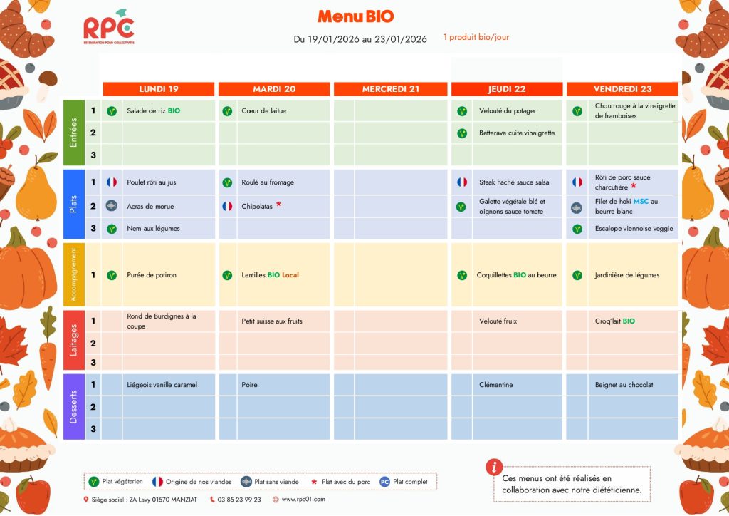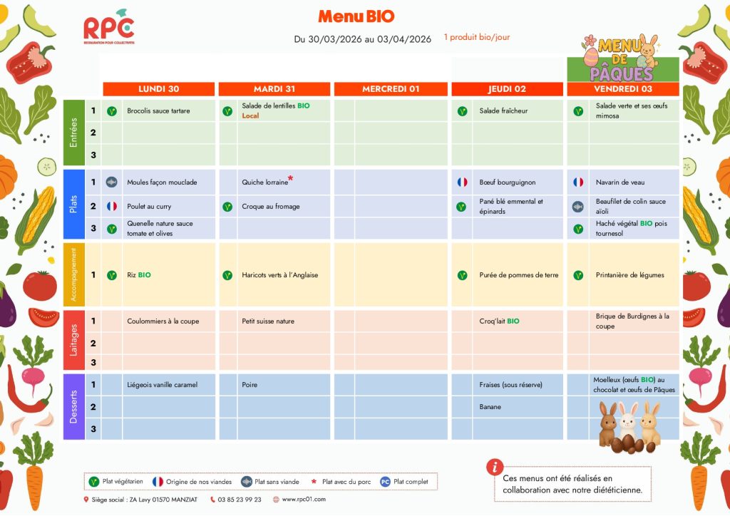 Cette année, les repas nous seront livrés par la société RPC basée dans l’Ain.Pensez à utiliser Ecole Direct pour annuler les repas de vos enfants !