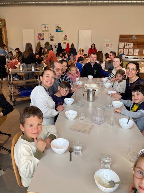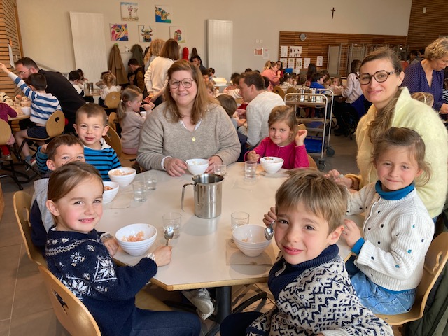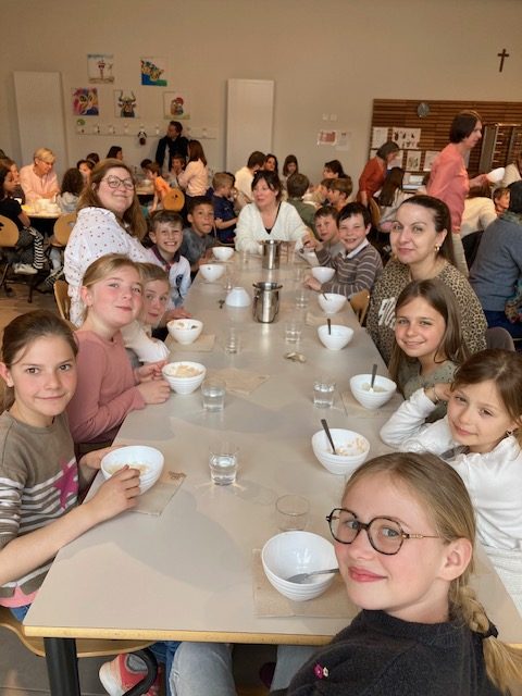 Ce vendredi 3 avril, les élèves de l’école ont participé au bol de riz. Des parents, grands-parents, paroissiens ont partagé ce grand moment de solidarité. En 2025, l’OGEC a fait deux dons de 600€, l’un à l’association Enfants du Mékong et l’autre à l’association FIDESCO.